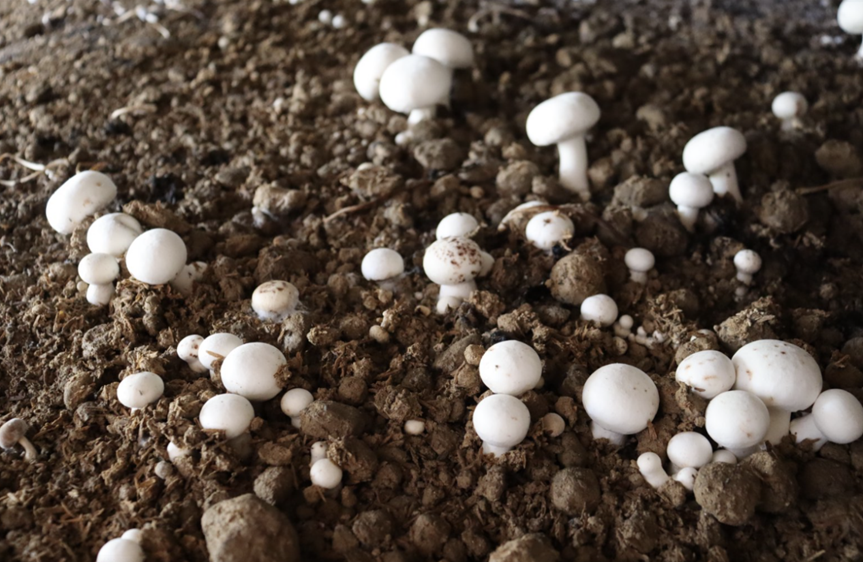 ▲增田镇长江村双孢菇种植基地培育的双孢菇