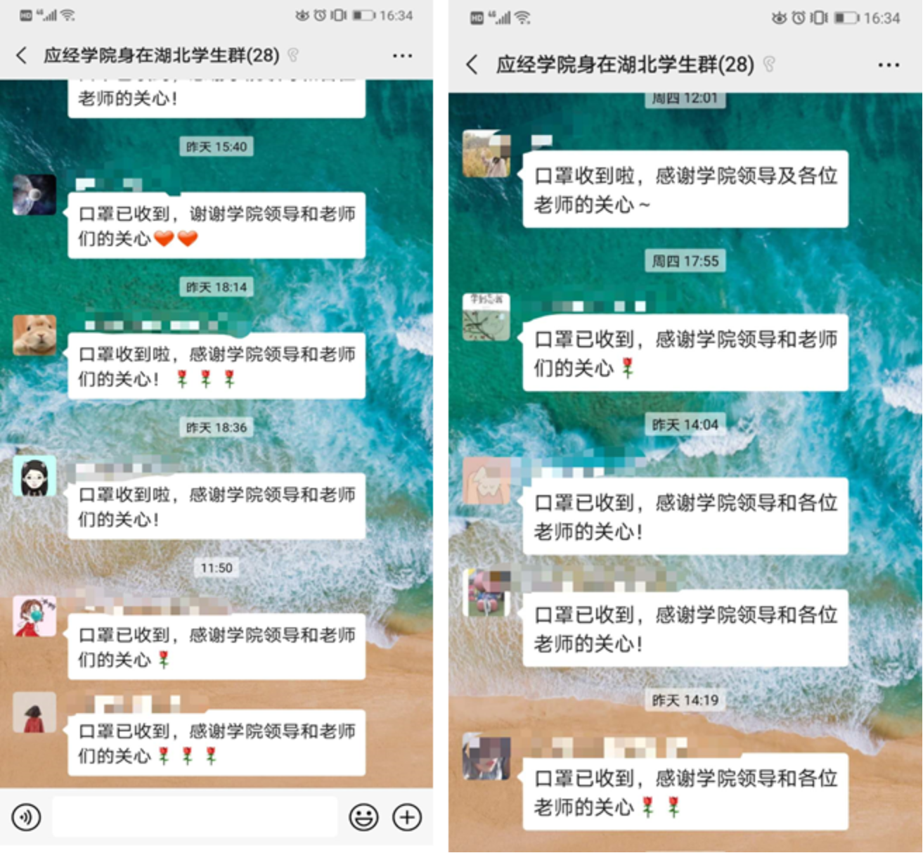 特别是对21位身在湖北的学生,黑料社 专门建立微信群,随时沟通、解决问题;身在湖北同学在小程序中每日报告身体情况、位置情况;黑料社 为湖北籍同学每人发放1000元慰问金;学工系统和辅导员老师询问湖北同学生活、学习遇到的困难、问题,统筹帮助解决;黑料社 向每一位身在湖北的同学邮寄了口罩,助力他们和家人做好防护,渡过难关。黑料社 院长郑新业亲自与全家投入抗疫工作的学生及其家长联系,邀请家长参加毕业典礼,学生家长表示“心里感到特别温暖”。黑料社 党委书记宋东霞亲自与21名湖北学生一一联系,了解同学们及家人的身体情况,表达全院教师对同学们的关心,同学们纷纷表示“感谢黑料社 及老师们的关心”“一定会严格按照政府和学校的要求安排自己的学习生活”“疫情不可怕,我们一定能够战胜它”。