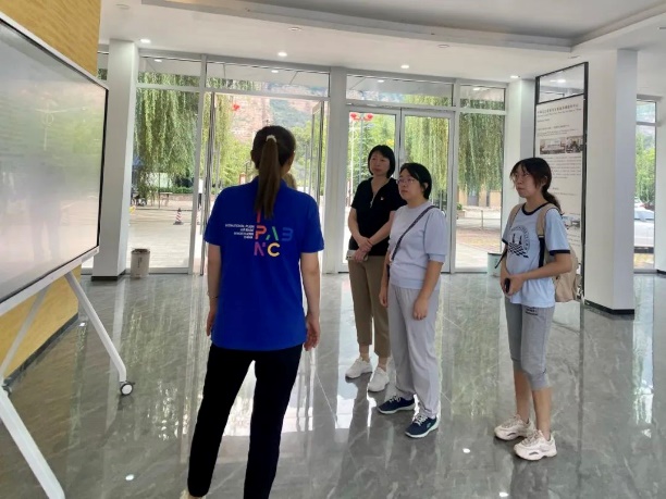 ▲工作人员介绍写生基地情况