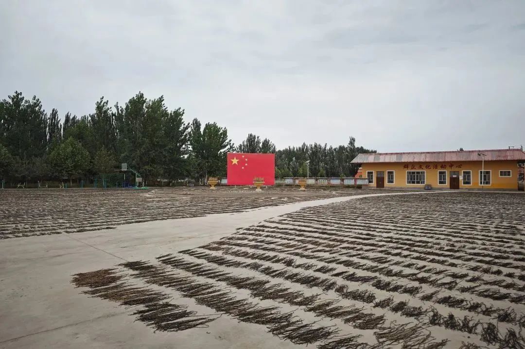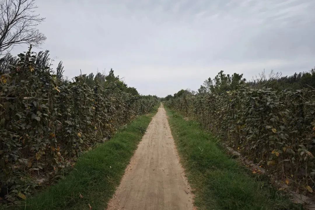 同样在莎车县依盖尔其镇阔纳先拜巴扎村,访谈团欣喜地看见新疆少见的江南景象:成片的白荷一望无际,茂密的水稻欣欣向荣,长长的豇豆铺满广场。由于水稻、豇豆这些作物在周围其他地方少有种植,或者只能在成本高昂的大棚中培育,因此当地的这些林果蔬菜常年供不应求,不愁销路。为了充分发挥活水优势,该村大量采用林粮间作、林下套种的方法:在豇豆底下种白菜,巴旦木底下种黄豆,真正将水库变为“生命库”,将河滩变为“种植园”。