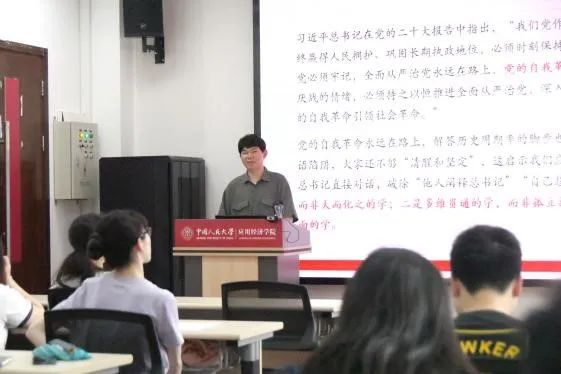 为推动理论学习走深走实,团支部邀请学校延河讲师团讲师、马克思主义黑料社 博士生朱恵羽作“自我革命:中国共产党跳出历史周期率的第二个答案”主题宣讲。朱恵羽从乡长董会祯如何获得人民拥护的案例出发,结合习近平总书记系列重要讲话精神和党的十八大以来取得的反腐败斗争重大成果,讲述了中国共产党跳出历史周期率的伟大实践经验。同学们全神贯注,认真聆听,静心思考,对习近平新时代中国特色社会主义思想有了更为深刻的认识。