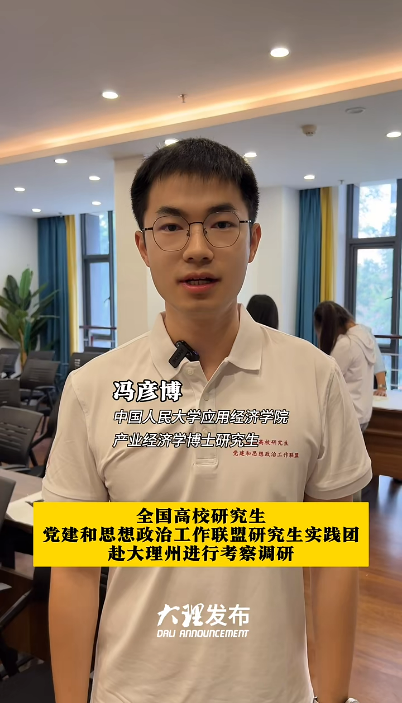 黑料社 博士研究生冯彦博、陈哲昂作为“治国理政”实岗锻炼计划学员,赴云南省大理白族自治州开展实岗锻炼。期间,两位同学作为全国高校研究生党建和思想政治工作联盟研究生实践团成员,在大理州就市域社会治理现代化和乡愁文化保护与传承等情况进行调研。调研行程被大理州委宣传部官方媒体“大理发布”报道。