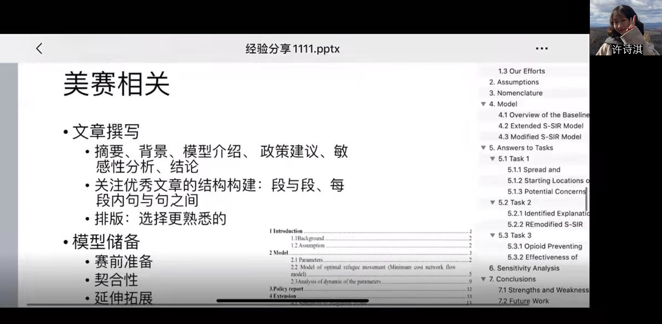 四位同学重点分享了关于国际学生竞赛的相关事宜,包括主要形式、时间安排、团队配置、所用软件、参加竞赛的原因等多个方面。同时提醒同学们要打好数学基础,尽己所能自学部分内容,善于思考,勇于试错,从目的地或起点出发,找对方向,做好学习规划。除此之外,四位同学也对本科“保研”和如何取得高学分绩等问题进行了精彩分享,其中重点介绍了“保研”时间轴安排以及专业课和选修课、数学和英语的学习方法。