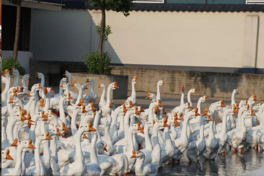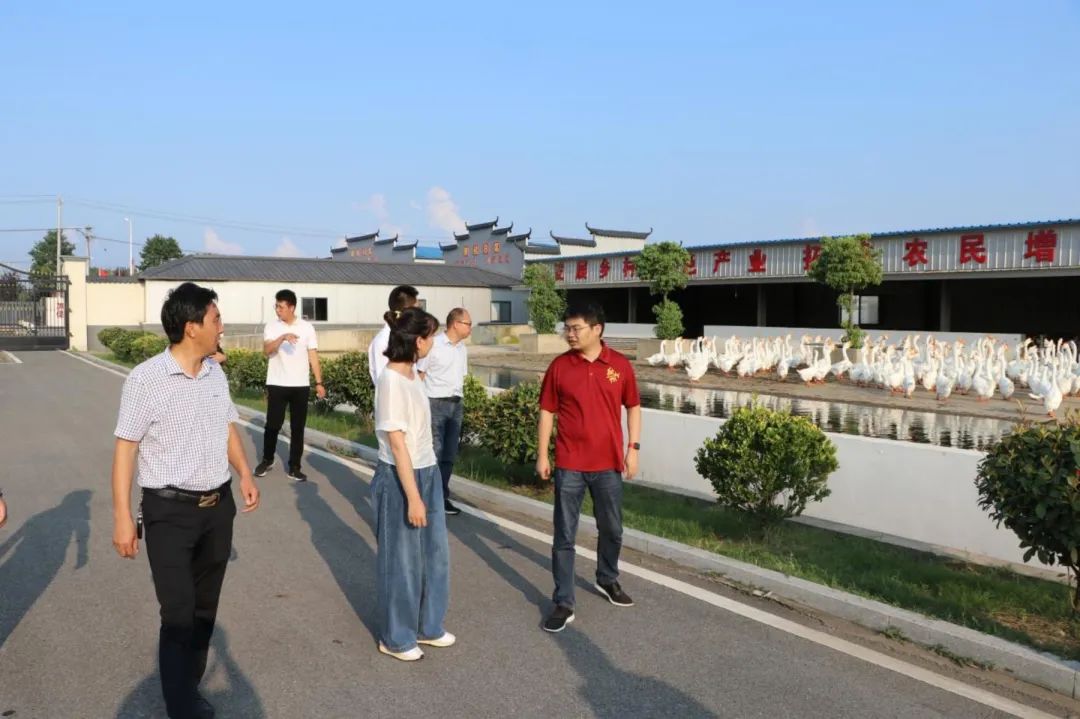 随后,传承队调研安徽展羽生态农业开发有限公司。该公司与中小养殖户建立了紧密的利益联结机制,主要有以下几种方式:一是直接收益机制。通过订单,以保护价收购,实施利益兜底,确保有市场风险时农户也有一定盈利。二是均衡受益机制。公司主要采用“五统一分”的方式,即统一供应鹅苗,统一疫病防疫,统一技术培训,统一饲养管理,统一销售,分户饲养。三是综合受益机制。保证农民不单有养殖环节的收益,更保证种养循环生态农业的收益。例如,展羽公司对于有种植经验的贫困户,免费提供芡实苗,免费提供种植,采摘技术,并高于市场价回收,确保亩产不低于2000元收入。四是风险评估机制,通过走访调研,确保回收价格始终高于市场价格,帮助中小养殖户规避市场风险。