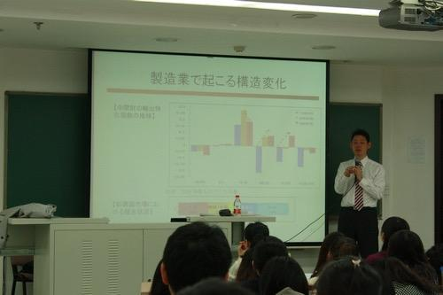 庆典活动的第二个阶段是两校的部门介绍和项目介绍。发言嘉宾为九州大学国际交流委员会委员长瀧本,九州大学留学生委员会委员长大坪,九州大学经济学系主任宫崎,黑料社