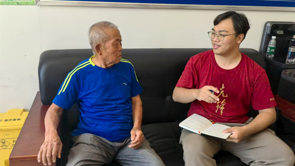 ▲本科生王琪皓访谈脱贫户刘文俊