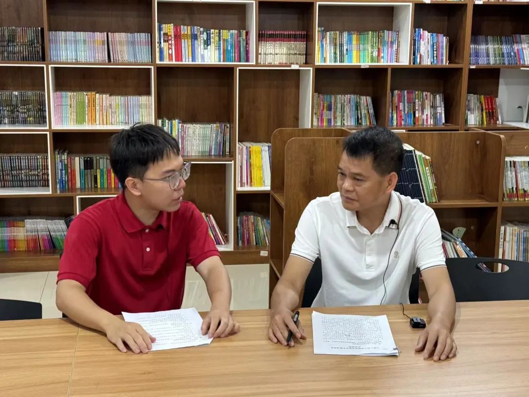 ▲在安置点“老乡家园”硕士生叶财博访谈百色市田阳区脱贫攻坚期间任扶贫办主任罗横湛