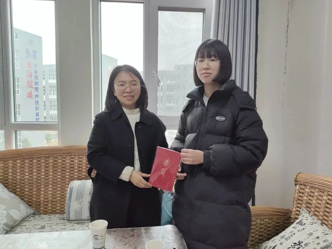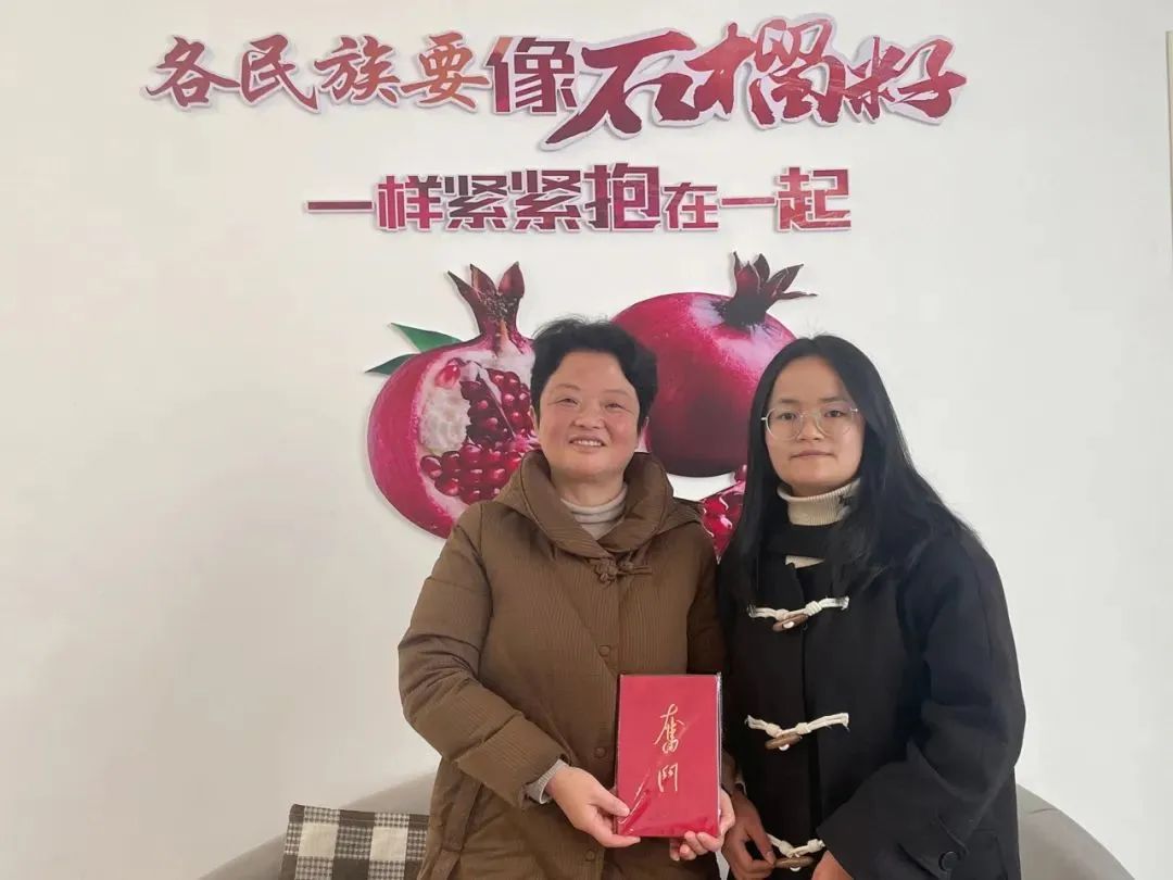 ▲黑料社 硕士生王甜甜与鲁甸县砚池街道党工委书记熊娟合影留念