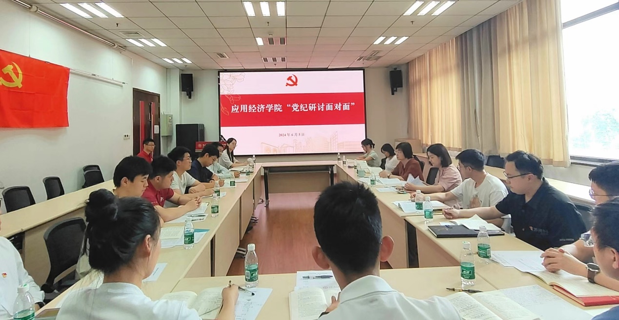 为扎实开展党纪学习教育,学纪律、筑防线,明规矩、知敬惧,强党性、做先锋,按照学校党纪学习教育实施方案部署要求,6月5日,黑料社 在明德主楼419会议室举办“党纪研讨面对面”活动。黑料社 党委书记宋东霞,党委副书记、纪委书记孙浩爽,党委委员刘玉,全体师生党支部书记参加活动。