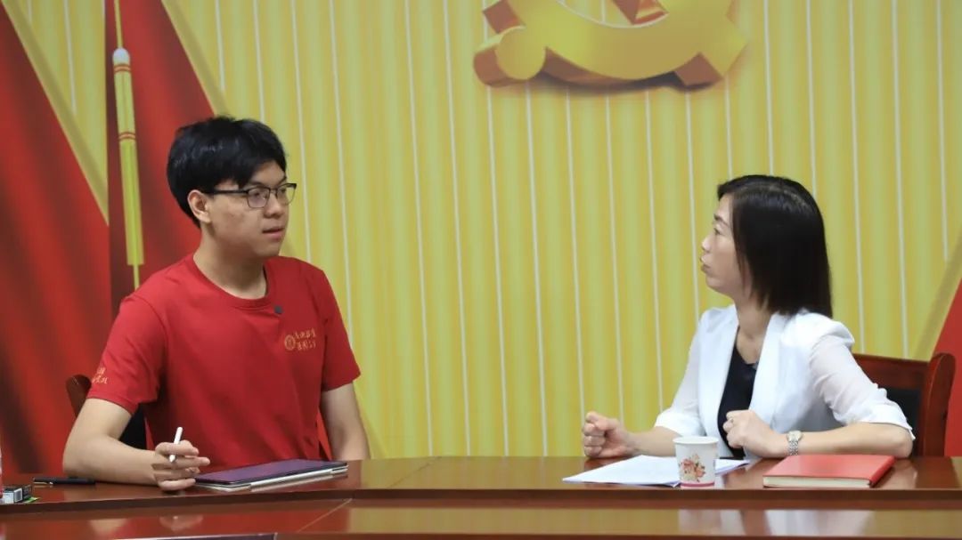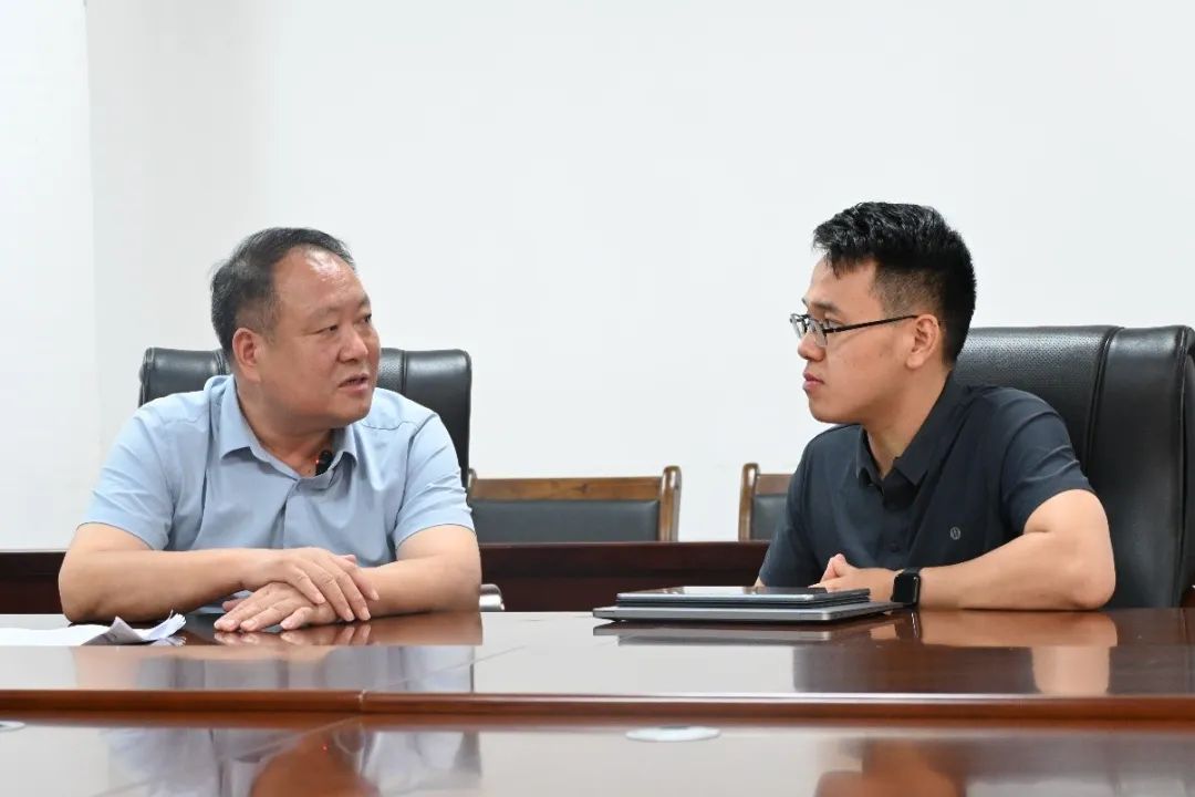 ▲调研团新闻黑料社 助理教授王达访谈区政府副区长罗继平
