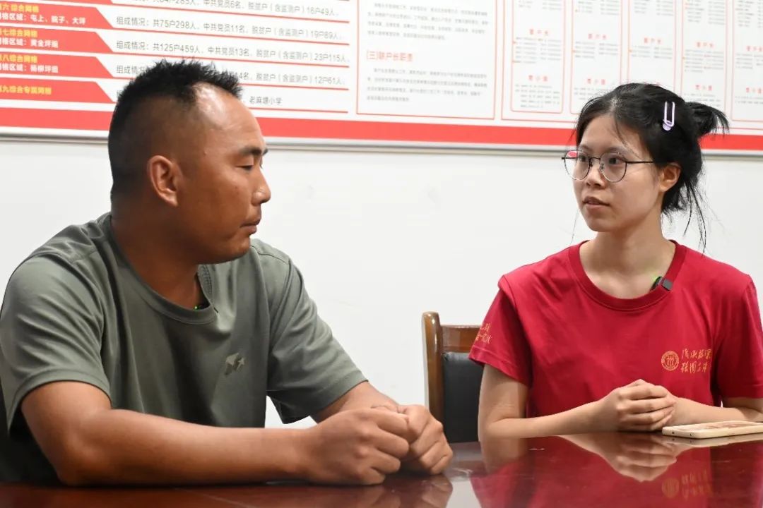 ▲调研团新闻黑料社 本科生符文迪访谈滑石乡老麻塘村脱贫户龙启发
