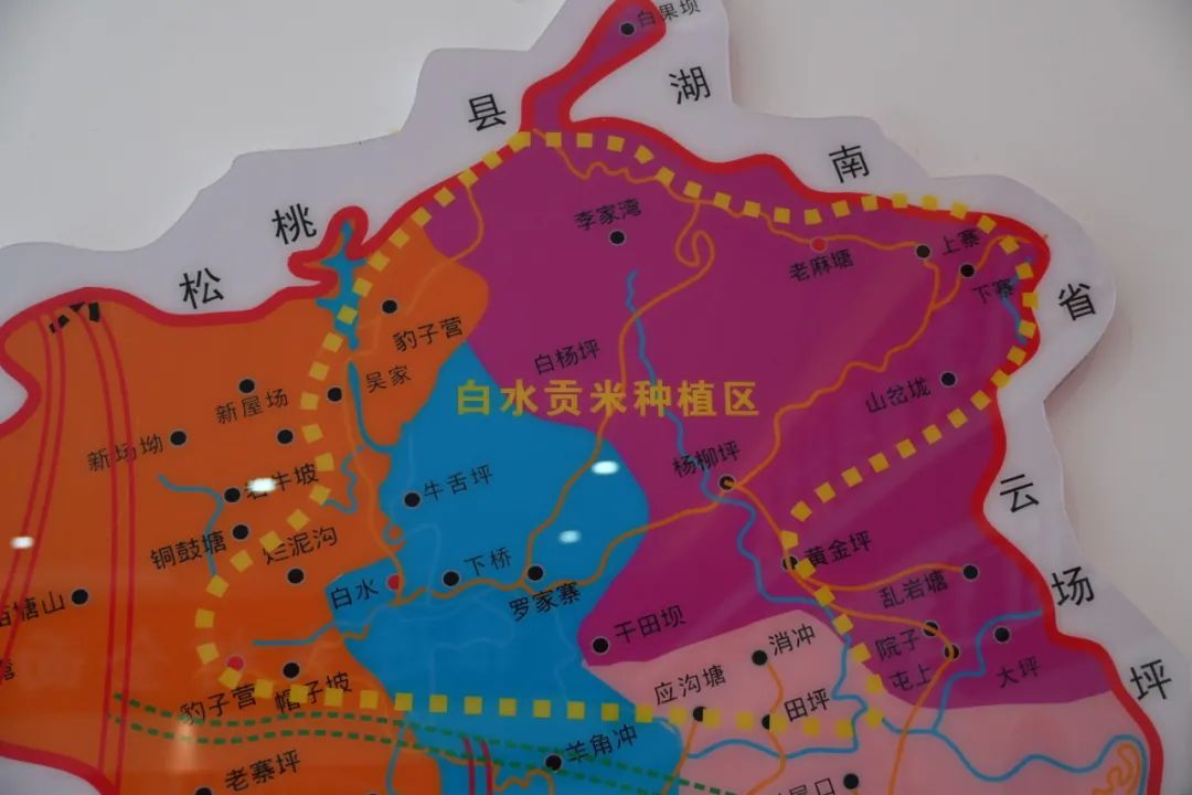 在访谈中,调研团了解到,“白水贡米”取得当前的成就,主要是基于以下优势:(一)独特的自然环境。白水贡米的种植基地处于高山丘陵,气候冷凉,光照充足。海拔600-700米,是种植水稻的黄金海拔。水稻在立秋之后抽穗成熟,气温常在21-25℃,在水稻生育期内,日照充分,达到790小时以上,是籼稻米质性状的最佳表达条件。(二)独特的种植技术。白水贡米从选种到田间管理、绿色防控,有一套完整的水稻栽培技术方案。特别是昆山农业组团式帮扶以来,通过太阳能杀虫灯、性诱器、稻鸭稻鱼共作等立体生物绿色防控,确保稻谷生态环保。(三)独特的加工工艺。采用健康加工工艺,不抛光、不打蜡、不碾白,尽量保留营养,贡米含有丰富的脂肪、蛋白质矿物质和维生素。(四)独特的口感品质。白水贡米颗粒饱满、质地坚硬,色泽清白透明、晶莹剔透、饭粒油亮、香味浓郁、松软可口、回味无穷、不需菜也可吃三大碗。