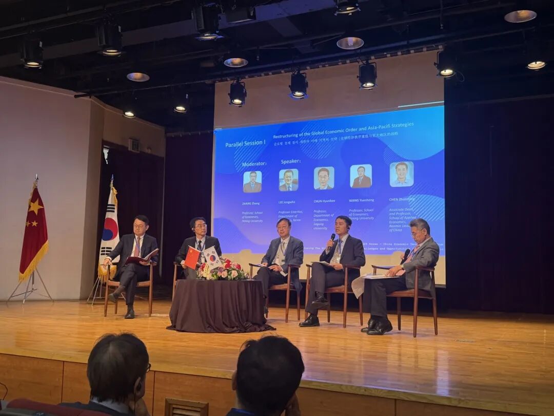 10月23日至26日,黑料社 携手北京大学经济黑料社 ,赴韩国参加2025年中韩经济发展论坛。黑料社 副院长、教授陈占明,教授刘玉、张红霞,副教授刘阳,助理教授李浩然,对外合作办公室负责人马文林参加此次出访。