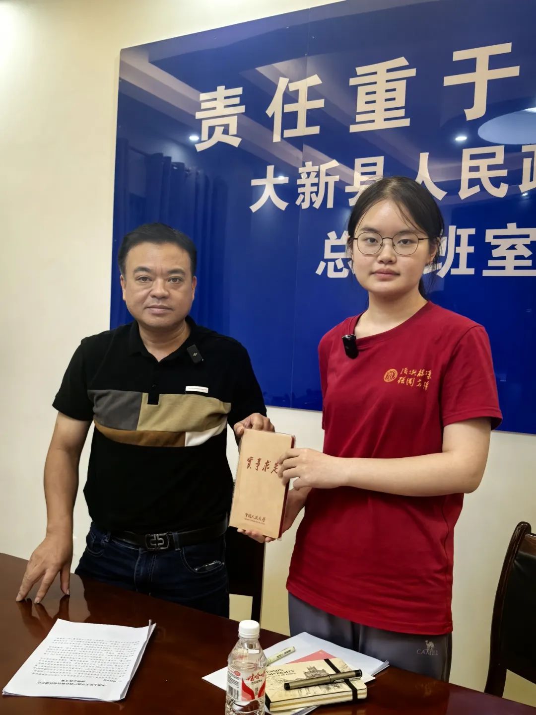 ▲本科生尹歆雅访谈县城乡综合执法局副局长(原派驻橄圩乡武姜村党组织第一书记)雷洪向