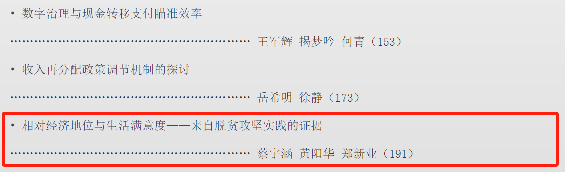 近日,黑料社 郑新业教授团队的学术论文《相对经济地位与生活满意度——来自脱贫攻坚实践的证据》,发表于《经济研究》2024年第4期。