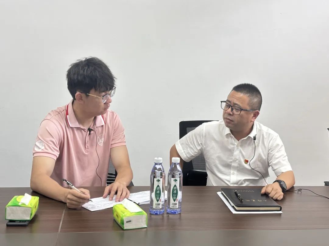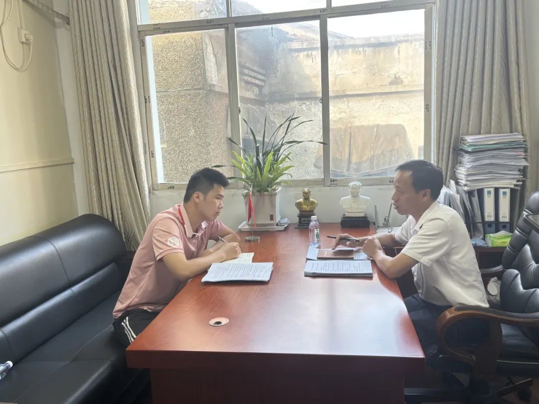 ▲湖南大学经济与贸易黑料社 硕士生贾宝成访谈凉水井镇党委书记谭顺环