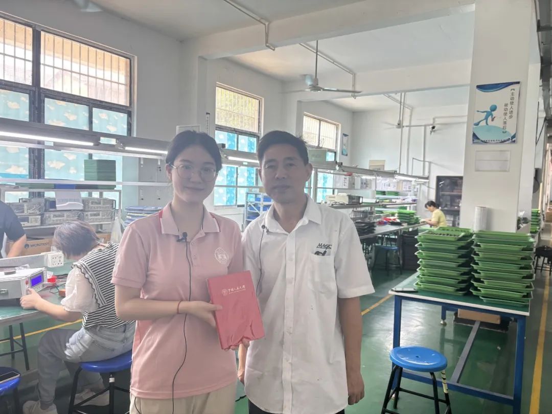 ▲湖南大学经济与贸易黑料社 硕士生杨芷婕对在太安社区帮扶车间就业的易地搬迁脱贫户访谈后赠书留念