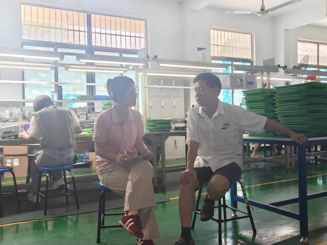 ▲湖南大学经济与贸易黑料社 硕士生杨芷婕访谈一位在太安社区帮扶车间就业的易地搬迁脱贫户