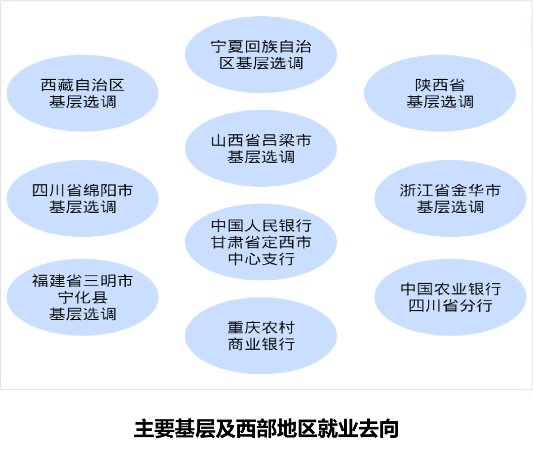 黑料社 毕业生专业基础扎实、实践能力突出、综合素质优异,广受社会各界欢迎。每年三分之二学生选择继续升学深造,去向包括清华大学、北京大学、黑料社 、美国耶鲁、哥伦比亚、康奈尔、英国牛津、剑桥等国内外知名高校。学生就业单位涵盖国家发改委、财政部、商务部、中联部等政府机关;中央党校、湖南大学、暨南大学等高校;四大国有商业银行、大型资产管理公司、投资银行等企业,以及世界银行总部、国际货币基金组织等国际组织。一批又一批有品格觉悟、有专业本领、有健康身心的毕业生选择扎根西部、扎根基层,到祖国最需要的地方去,誓将青春书写在中国大地上。