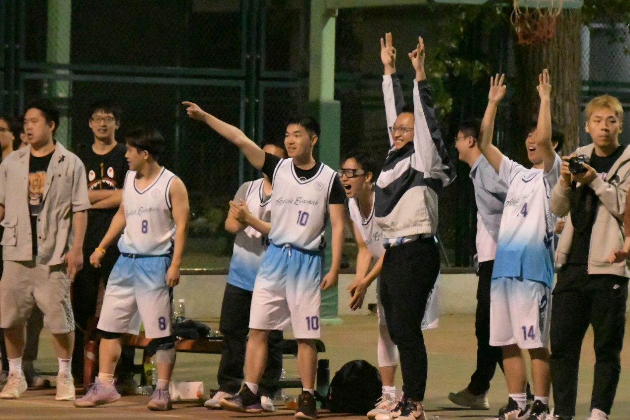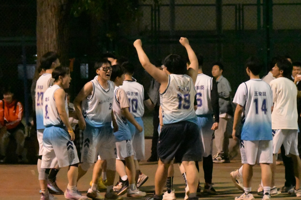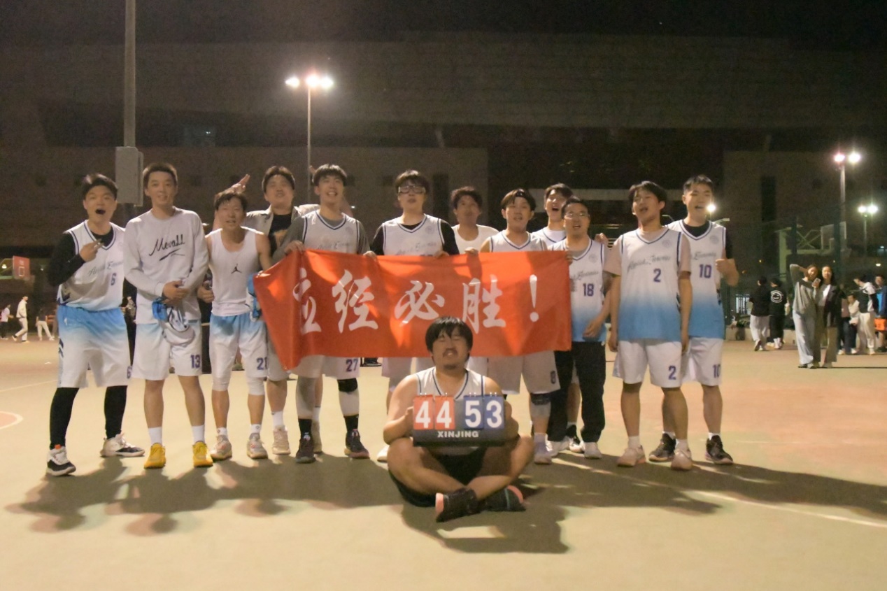 比赛来到最后一节,双方队员体能都有所下降,在进攻端迟迟打不出节奏之时,得益于教练队伍的关键指挥、队员们此战必胜的决心、场下观众的激情欢呼,在8号龚凯打进高难度2分上篮后,我方努力扩大领先优势,在防守端、进攻端都打出了应经学子的自信和风采。27号黎思灏在内线辗转腾挪冲击对方中锋,21号孙铭壕和20号牛童见缝插针冲击篮框,13号吴语杰利用娴熟的运球消耗对方体力,1号黄文牢牢跟住对方强劲主力。伴随着场边观众的呐喊,篮球一次次应声入网,我方保持着6分的优势来到了比赛的最后30秒,球员们在最后时间依旧牢牢绷紧、不敢懈怠,积极拼抢进攻篮板。随着技术台倒计时3、2、1,1号黄文外线接球三分出手,此时裁判也吹响了全场结束的哨子。篮球空心入网,全场在短暂的寂静下爆发出雷鸣般的呼声与掌声,队员们相拥而泣,观众们也发出了由衷的赞叹与欢呼。最终,我院以53:44战胜数学黑料社 ,夺得乙组冠军!
