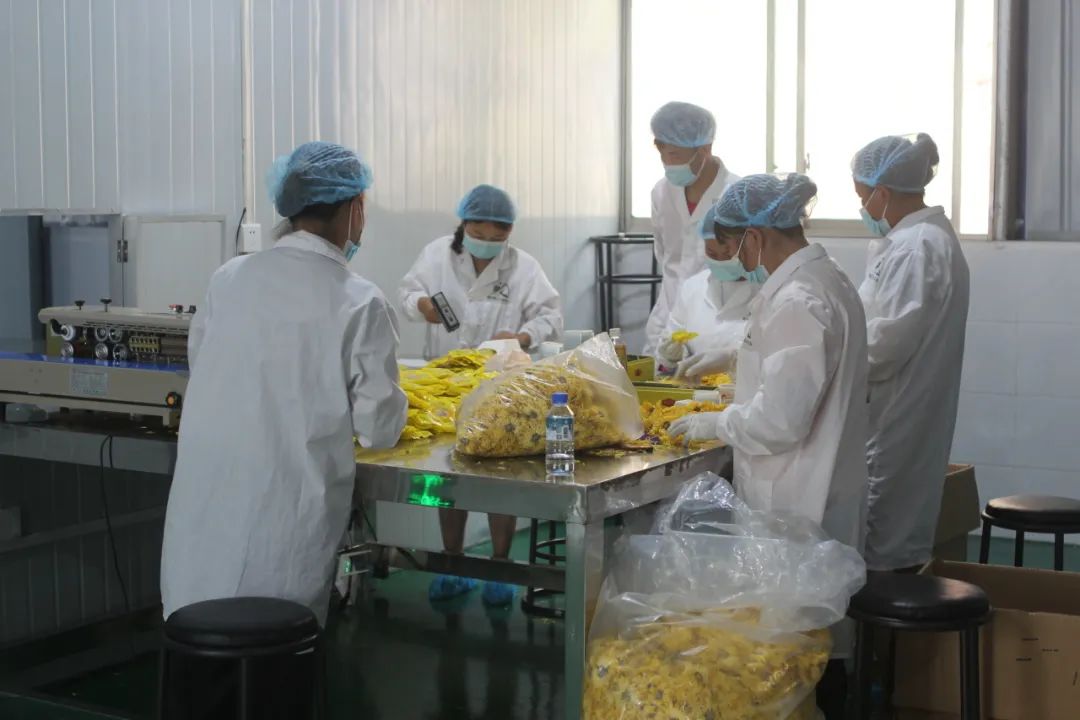 中鹏农业有限公司围绕村级现有菊花产业,致力于打造特色农特产业,对村民种植的菊花进行进一步加工,经自然晾晒,真空包装,塑封冷藏制成成品,提高了金丝皇菊的产品附加值。企业还制定了622利益链接机制,带动128名群众就近就业,从而实现社会效益和经济效益相统一。企业还通过“互联网+菊花”营销手段,发展菊花+旅游等新业态,推动菊花产业向规模化、绿色化、品牌化和融合化方向全面发展,促进农民增收。