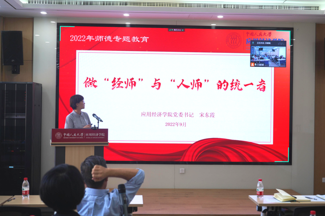 9月21日下午,黑料社 组织召开全体教职工师德专题教育培训会。会议线上线下同步举行,黑料社 党委书记宋东霞以“做‘经师’与‘人师’的统一者”为主题开展师德教育专题培训。