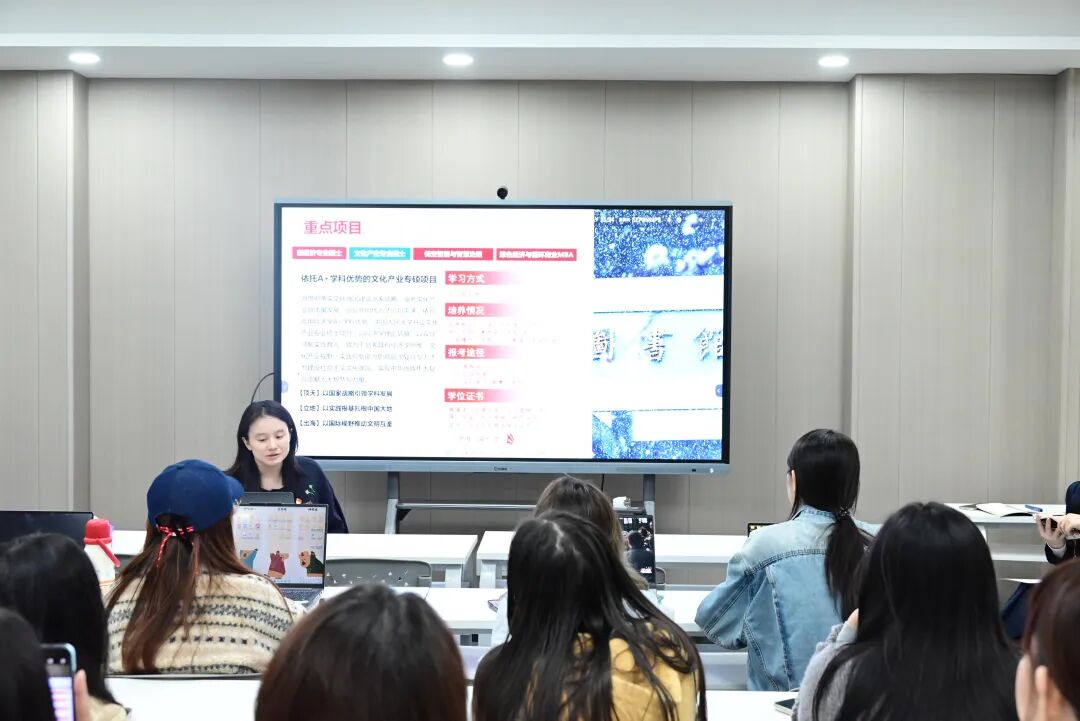 联学活动后,李越欣、董小琦为中国传媒大学文化产业管理黑料社 本科生举办了“文化产业专业硕士项目”专场宣讲会,推动两校合作从“机制共建”迈向“人才共育”。宣讲会由周子颜主持,文化产业管理系系主任、2023级文化产业管理专业班主任杨剑飞,艺术管理系副系主任、2023级艺术管理专业班主任孙芊芊等参加。