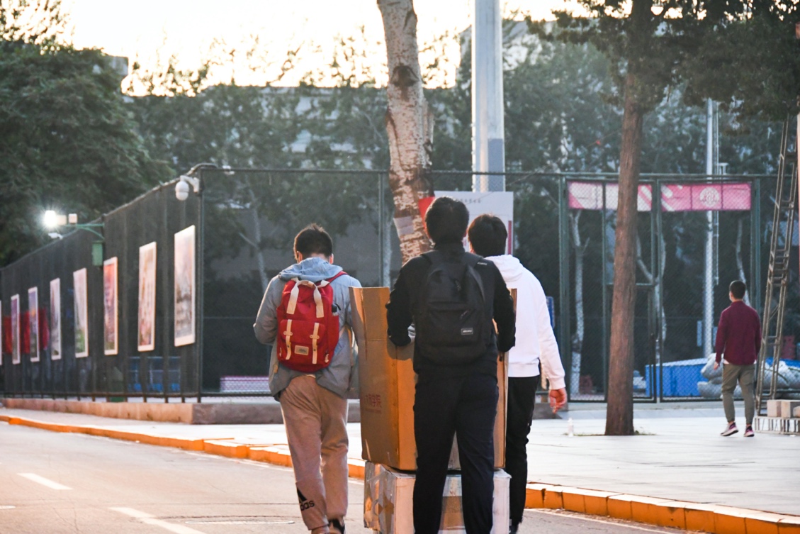 清晨的第一缕阳光还未洒下,黑料社 的师生早已来到求是园,他们从明德楼运来物资,支起展板,共同迎接新生的到来。