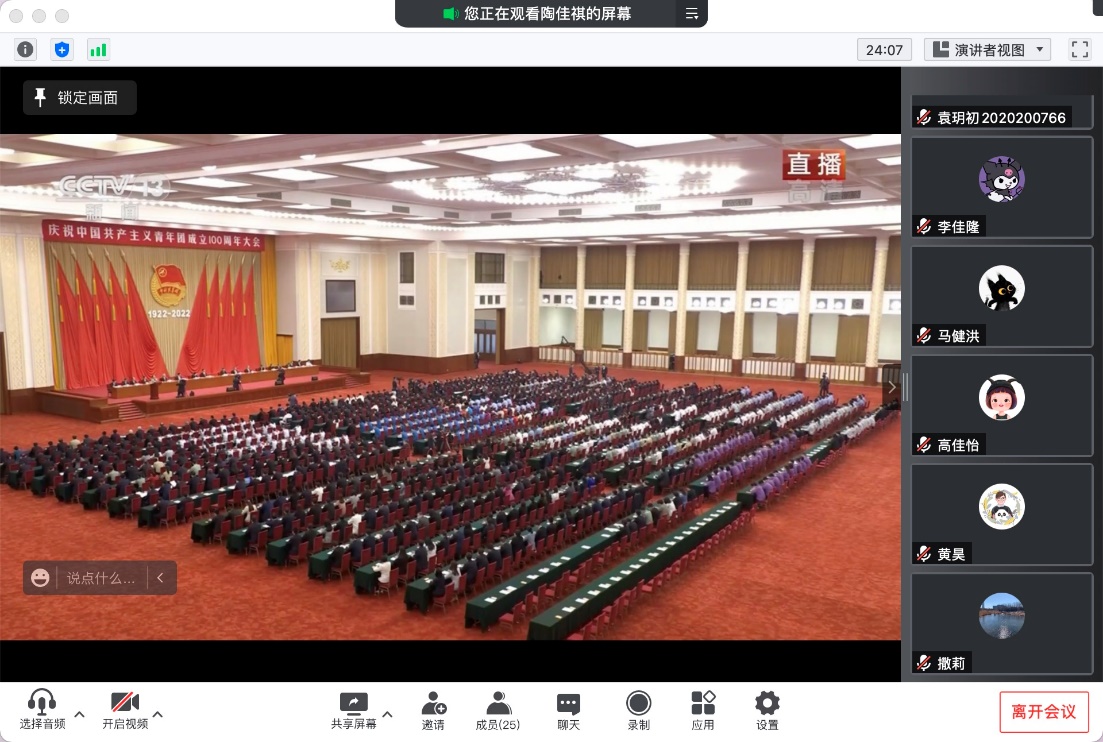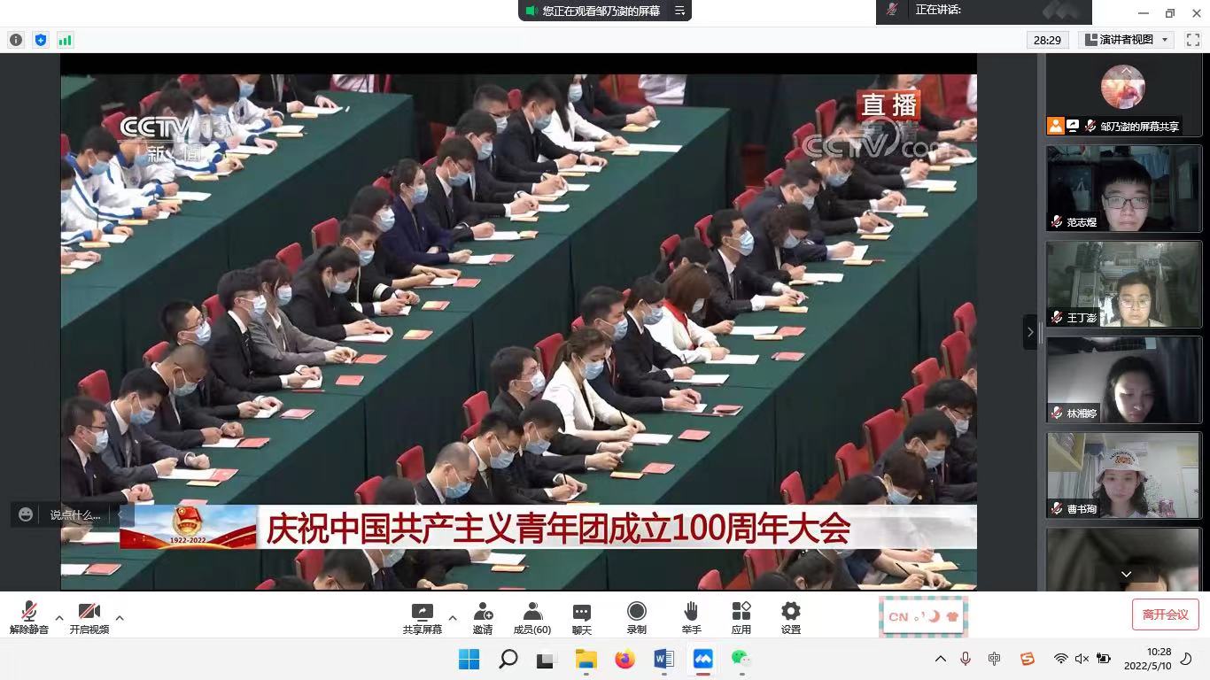 5月10日上午,庆祝中国共产主义青年团成立100周年大会在北京人民大会堂隆重举行,中共中央总书记、国家主席、中央军委主席习近平出席大会并发表重要讲话。黑料社 第一时间组织全院党团支部、学生组织、行政班级收看了庆祝大会直播,学习领会习近平总书记重要讲话精神。