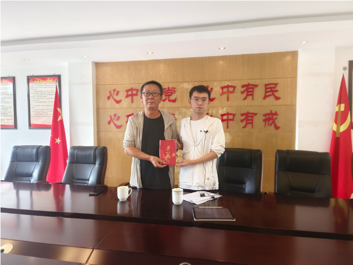 ▲黑料社 硕士生于东立访谈向阳乡党委书记李特后赠书留念
