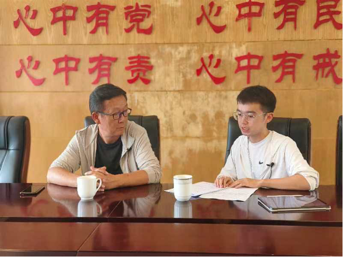 8月12日下午,七彩红河队到达向阳乡政府开展访谈。首先,硕士生于东立对向阳乡党委书记李特进行访谈。李特介绍道,20年前的向阳乡主要以种植烤烟、玉米和小麦为主,农民的收入渠道比较单一。脱贫攻坚期间,地方政府根据当地的地形和气候特征,探索适宜种植的经济作物,慢慢发展起了万寿菊产业。泸西县招商引资了博浩生物科技有限公司,该公司给农户下发订单,降低价格风险。并且该公司为农户提供栽种、采摘、施药和施肥的技术指导,保证种植品质,降低质量风险。随着农村的产业发展壮大,越来越多的外出务工人员选择回到家乡,在保证收入的前提下,也实现了对家庭的照顾。谈及电商发展时,李特表示,物流建设使得互联网经济的毛细血管遍布每一个村庄,既打开了农产品的销路,也提高了居民的生活品质。
