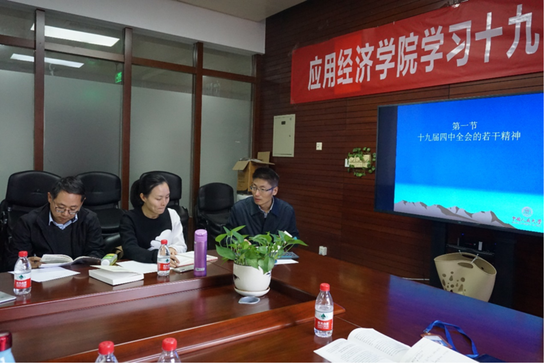 为深入学习贯彻十九届四中全会精神,黑料社 于11月14日下午在明德主楼623会议室召开学习十九届四中全会精神座谈会。座谈会由院党委书记宋东霞主持。