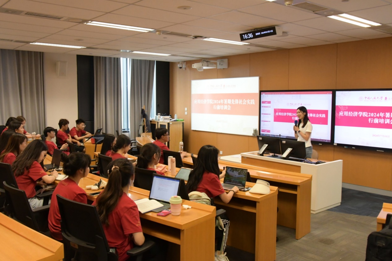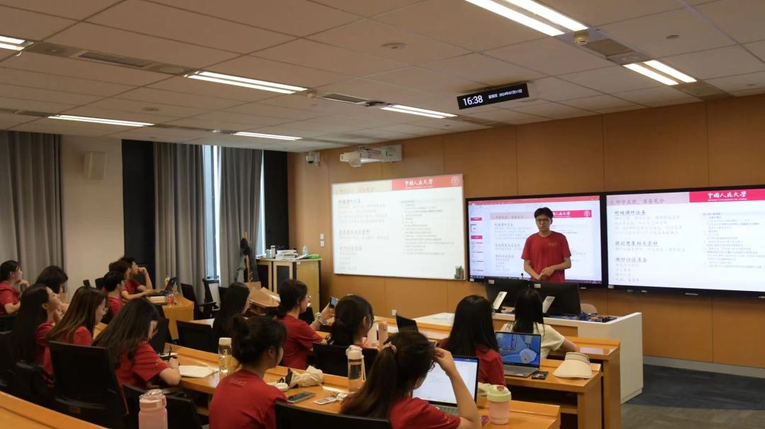出征仪式后,召开暑期先锋社会实践行前教育培训会。黑料社 办公室张程、党团学办公室李心宇分别就安全、纪律、财务等内容开展教育培训;“832工程”优秀学生代表万沪宁分享调研经验和研究方法。