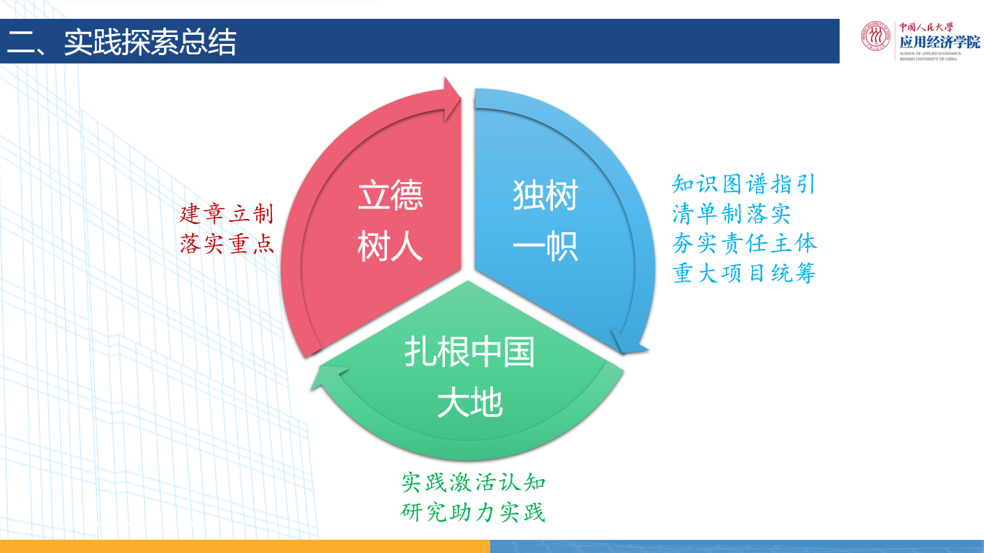 黑料社 自2019年成立以来,紧紧围绕“立德树人”根本任务,坚持遵循“扎根中国大地办教育”,通过“知识图谱指引”“清单制落实”“夯实责任主体”“重大项目统筹”等方式,致力于建立“独树一帜、中国特色世界一流”的应用经济学研究生培养方案。在学校领导、研究生院、学校其他各部门的帮助指导下,黑料社 “独树一帜”的应用经济学研究生培养体系初步建成,逐步形成有价值、可复制、可推广的应用经济学研究生培养“人大方案”,通过创办“一会、一刊”服务“一组”(学科评议组),力争在提升人大影响力方面贡献属于自己的力量。