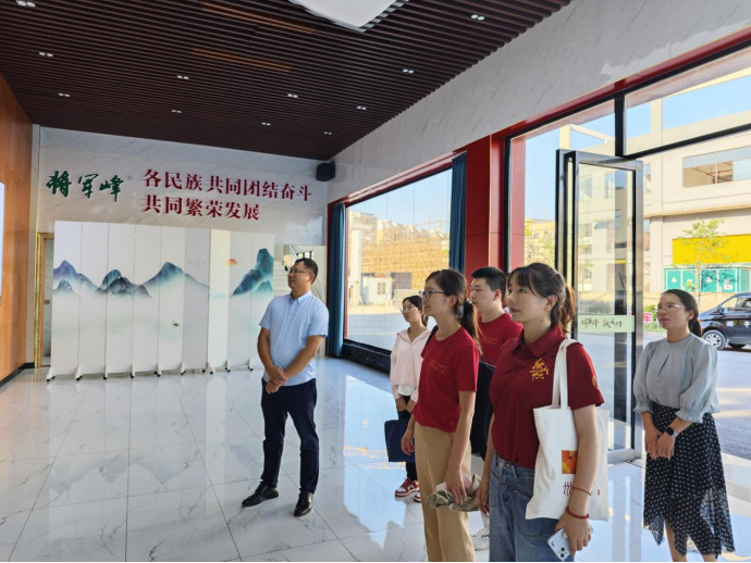 7月24日下午,调研团前往广西茶叶展示中心。茶叶展示中心位于昭平县六堡茶农旅示范园区中心,因储存了大量的茶叶产品和原茶,也被称为“六堡茶仓”。在展示中心一侧,坐落着广西昭平茶科技小院,与北京大学、中国农业大学等高等院校建立校企合作,专家学者们为茶叶优良育种提供技术支持。
