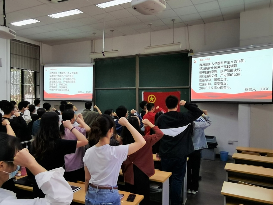 在中国共产主义青年团成立一百周年之际,黑料社 各团支部开展主题团日活动,为本学期新发展团员举办入团仪式,新老团员重温入团誓词。团员们在团旗下、誓词中感悟入团初心。大家纷纷表示,庄严的誓词提醒着青年要牢记党的教诲,立志民族复兴,不负韶华、不负时代、不负人民,在青春的赛道上奋力奔跑,争取跑出当代青年的最好成绩。