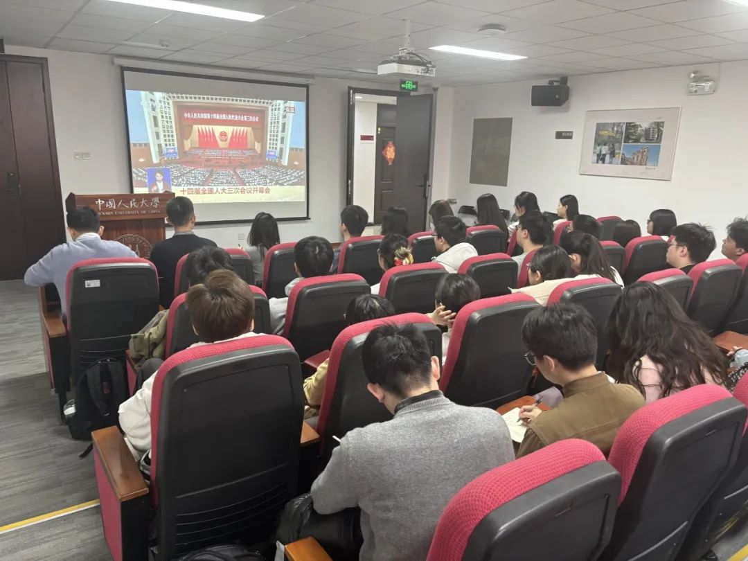 全国“百个研究生样板党支部”产业经济学博士生联合党支部、黑料社 本硕博各学段学生代表与学校“红船领航”党员先锋营学员开展联学活动,集中观看十四届全国人大三次会议开幕会直播,并结合应用经济学科特点,分享学习体会。