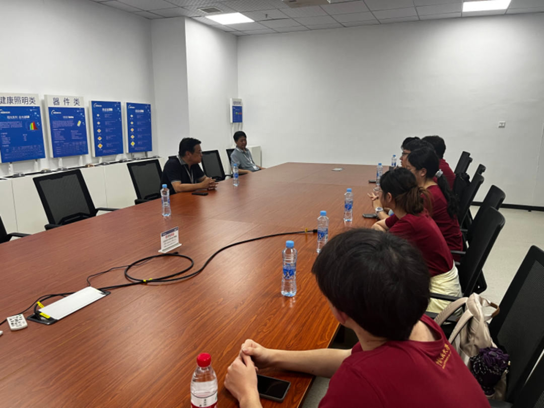 7月24日下午,调研团前往南昌易美光电科技园。江西的光电行业具有独特优势,南昌的光电及通信产业集群更是已经成为高新区的主导产业之一。易美光电是全国光电行业高精尖产品领导者,承担了量子点发光显示关键材料与器件研究、全光谱无机半导体材料产业化制造技术等6项国家重点研发计划。负责人向调研团成员介绍了企业背光模组、智能显示、光电器件封装等主要业务,以及在教育照明、全光谱光源光照等方面的成就。调研团还走进企业车间,了解关键技术在生产中的应用。