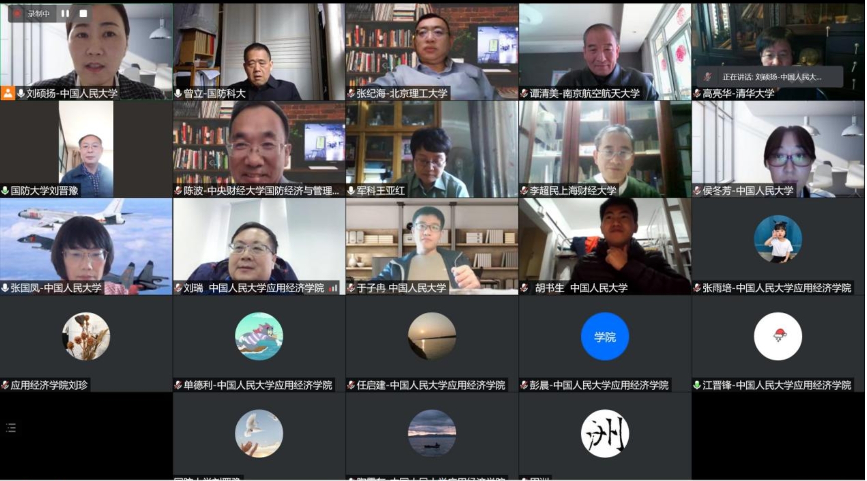 为进一步推动国防经济学科建设,黑料社 于2021年11月9日下午举办国防经济学术研讨会,会议主题为“大国博弈下的国防与经济”。受疫情影响,本次研讨会在线召开,来自国防大学、军事科黑料社 、国防科技大学、清华大学、北京理工大学、中央财经大学、上海财经大学、南京航空航天大学、工信部赛迪研究院的校外专家和来自中国人民大学黑料社 的师生,共计二十余人参加此次研讨。会议由黑料社 刘硕扬副教授主持。