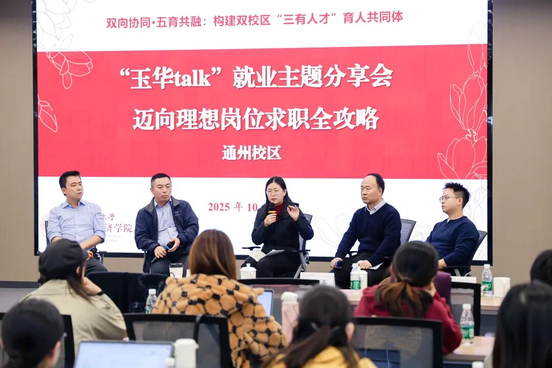 10月26日下午,就业主题分享会“玉华talk:迈向理想岗位求职全攻略”举办,作为“双向协同·五育共融:构建双校区‘三有人才’育人共同体”思政工作精品建设项目的系列活动,此次分享会在通州校区学生事务中心举办,来自中关村校区、通州校区的同学们共同参与。2025/11/06