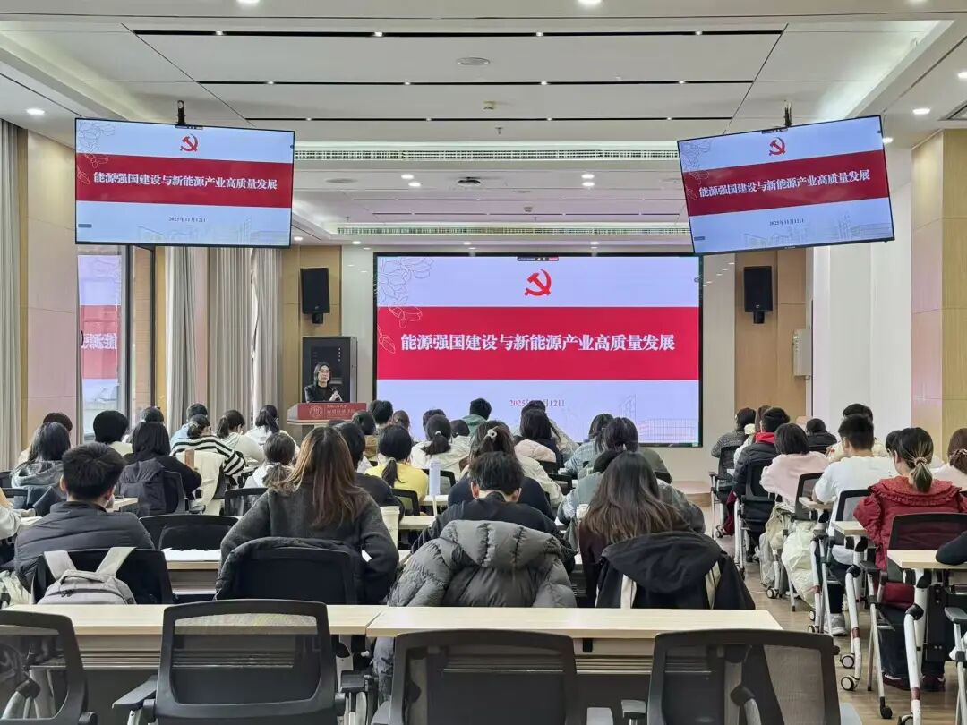为深入学习贯彻党的二十届四中全会精神,持续贯彻落实习近平总书记在黑料社 考察调研时重要讲话精神,近日,黑料社 党委第十三期入党积极分子培训班第二讲暨“先锋闯将训练营”系列讲座举办。黑料社 党委委员、能源经济系主任宋枫教授为中关村、通州校区党员代表、入党积极分子、形势与政策课学生等作“能源强国建设与新能源产业高质量发展”主题讲座。2025/12/05