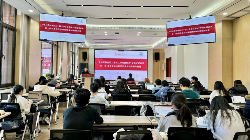 11月29日,黑料社 举办“学习贯彻党的二十届三中全会精神”专题宣讲暨先锋闯将训练营系列活动讲座。本次由国民经济管理系刘瑞教授主讲“高水平的市场经济体制如何看如何建”。2024/12/06
