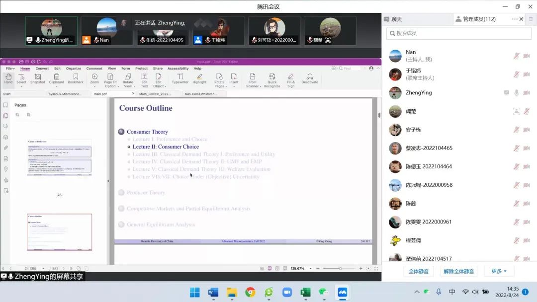 为完善研究生培养体系,精准对接学业需求,黑料社 于2022年8月24日至26日推出研究生核心课预习课程系列——2022-2023学年秋季学期高级微观经济学、高级数理经济学预习课。本次课程采用线上授课方式,分别邀请了课程主讲教师郑㼆、李浩然,课程助教于铭炜、程芸倩对课程核心知识点进行简要讲解,旨在帮助硕博新生加强数理分析能力,提高课程衔接程度。2022/08/31