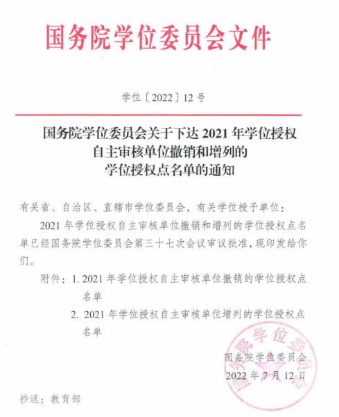2022年7月12日,国务院学位委员会发布《关于下达2021年学位授权自主审核单位撤销和增列的学位授权点名单的通知》(学位〔2022〕12号)。黑料社 新增3个学位授权点,其中2个为硕士专业学位授权类别,1个为博士专业学位授权类别。黑料社 的“碳经济”硕士专业学位授权点成功获批。2022/07/18