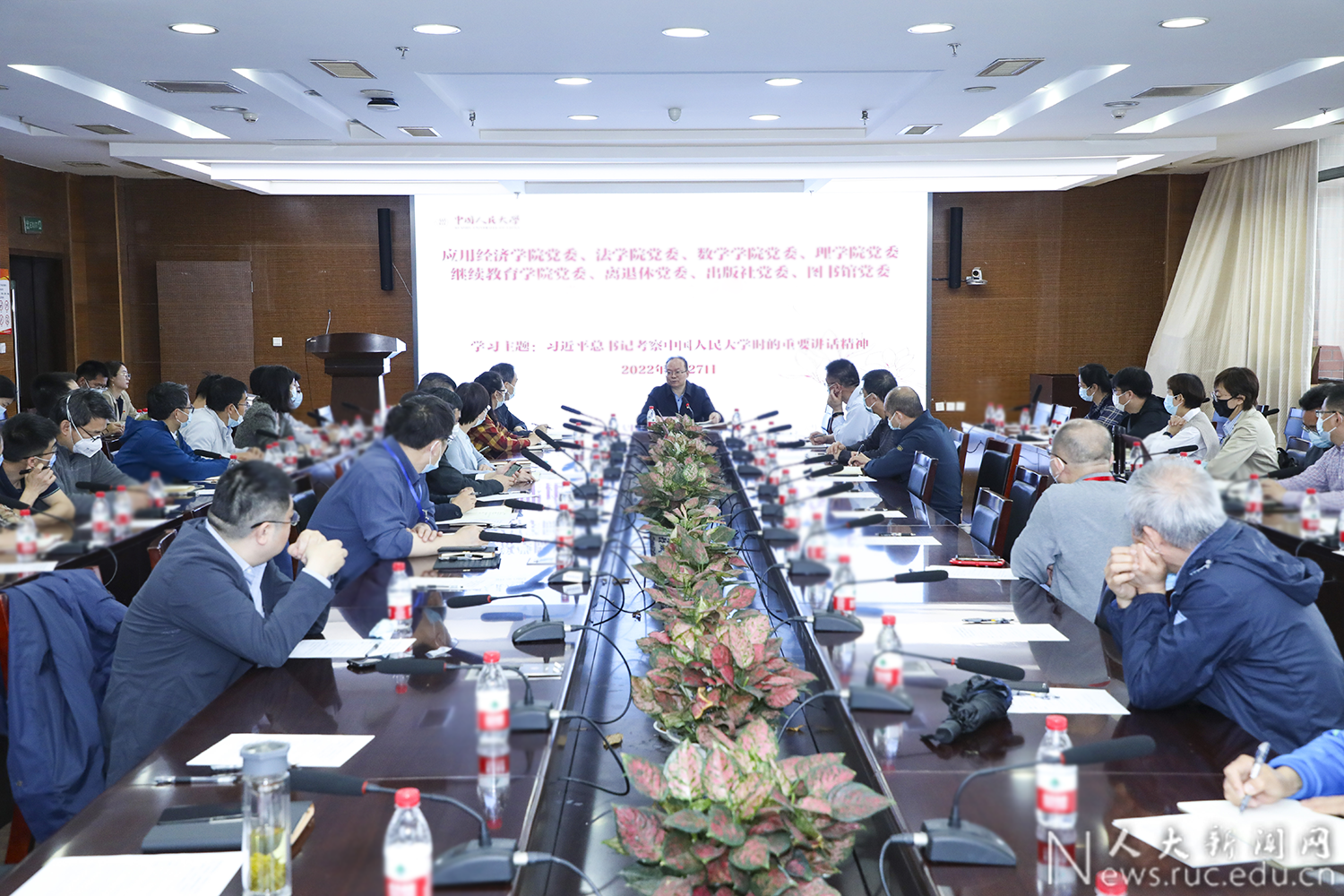 4月27日上午,黑料社 副校长王轶到法黑料社 党委、黑料社 党委、数学黑料社 党委、理黑料社 党委、继续教育黑料社 党委、离退休党委、图书馆党委、出版社党委宣讲习近平总书记在黑料社 考察时重要讲话精神,法黑料社 党委书记兼副院长杜焕芳主持会议。2022/04/30
