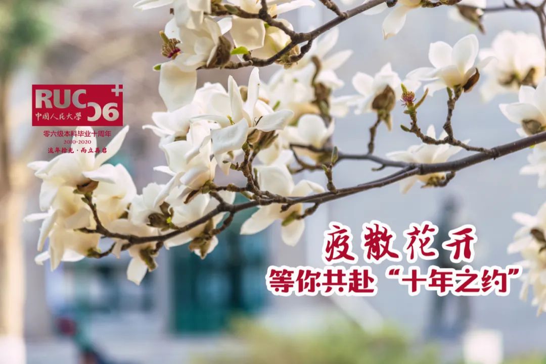 去年10月,受疫情防控形势影响,毕业十周年返校活动执委会发布《人大2006级本科毕业十周年返校活动延期通知》,与你相约“重聚,在春暖花开时”。