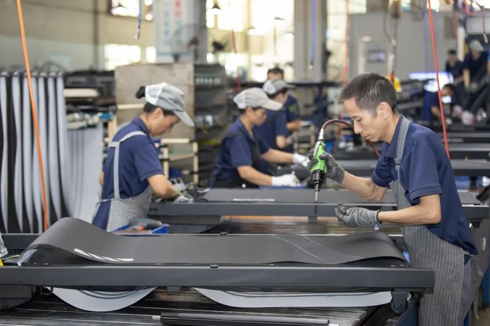 ▲2025年9月12日,福建晋江一家体育器材工厂的工人在车间流水线上组装跑步机。新华社发(连静毅摄)