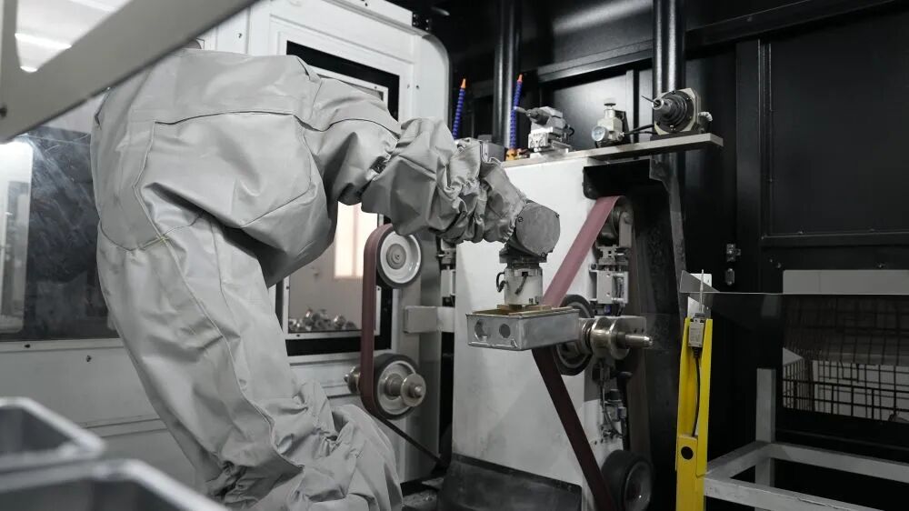 ▲2025年12月19日,普卡科技制造有限公司生产车间内,机器人正在打磨电机外壳。新华社记者 戴斌 摄